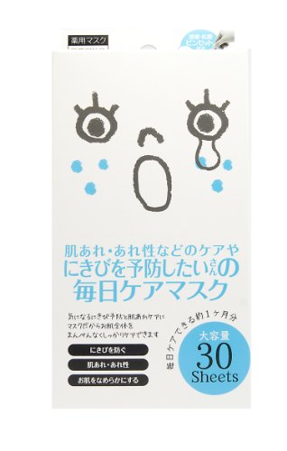 【仕様】大容量30枚入り 低コストなシートマスク / 【ニキビケア】有効成分のグリチルリチン酸ジカリウムと水溶性プラセンタエキスが、ニキビ・肌あれの炎症とメラニンを抑制し、ニキビの予防だけでなく、ニキビ跡のケアまで行います。また、ニキビができやすい顎まで顔全体を包み込める大きいサイズのため男性、女性問わず使用できます。 / 【ニキビ予防・肌荒れ対策】ニキビ、肌荒れに悩む方へ向けた、保湿、美容のシートマスクです。肌が乾燥すると、皮脂分泌が過剰になりアクネ菌が活性化し、ニキビができます。薬用成分がはいったシートマスクで保湿することでニキビ、肌荒れを防ぎます。 / 【高保湿成分と低刺激な成分】ニキビ肌には潤いと保湿が必要です。3つの保湿成分により、ハリのある肌へ導きます。また、肌の刺激になりやすい5つの成分が無添加で、シートの素材には100%天然コットンを使用しオイルフリーなため、敏感肌の方でも使用できます。 / 【メンズニキビには保湿】女性の肌と比較して、皮脂量が2倍あるのに対して、水分量は30~50%と少ないため、肌内部の乾燥を放っておくと皮脂が過剰分泌され、ニキビが治りにくくなります。そのためメンズの肌こそ保湿を行いニキビケアをすることが重要です。